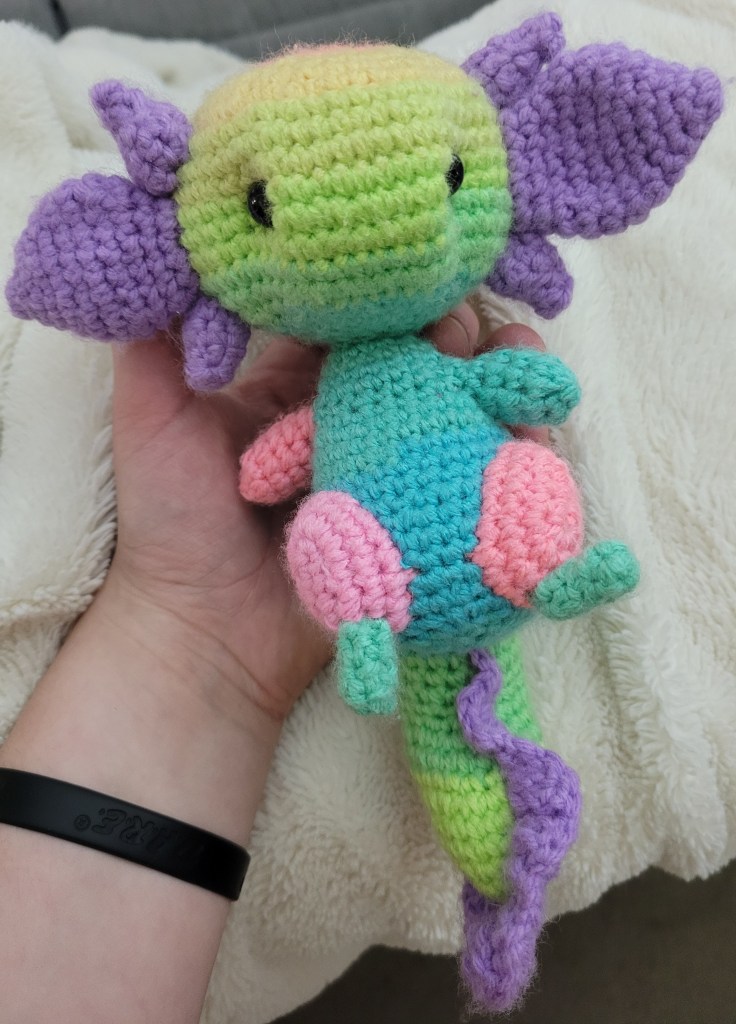 | 01. | Surface crochet scs down the middle of the toy’s back, around the TAIL, and back up to the bottom of the BODY, ch1 | ( varies ) |
